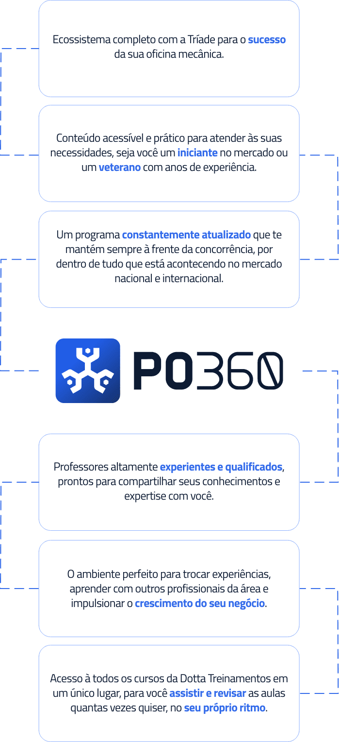 Conheça os benefícios e as funcionalidades disponíveis na PO360 através de uma visão completa. Aproveite a oportunidade para explorar como a Plataforma Oficina 360 pode beneficiar você e seu negócio de oficina mecânica em uma apresentação detalhada de aproximadamente uma hora. Além disso, tenha a chance de esclarecer suas dúvidas diretamente.